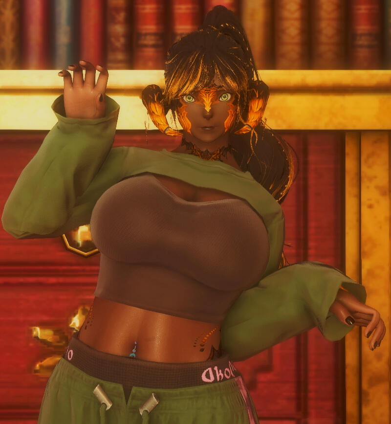 • clothing : When not in uniform, she prefers loose, airy clothing that do not feel stifling, come winter she does opt for more appropriate clothing though still not so stiflingMENTAL .